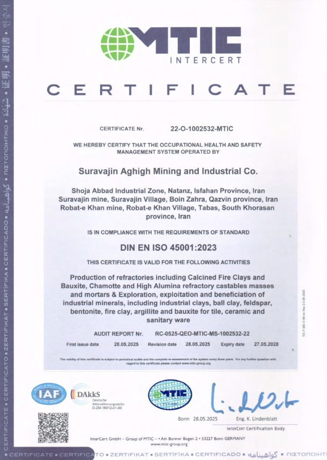 گواهینامه سیستم مدیریت ایمنی و بهداشت